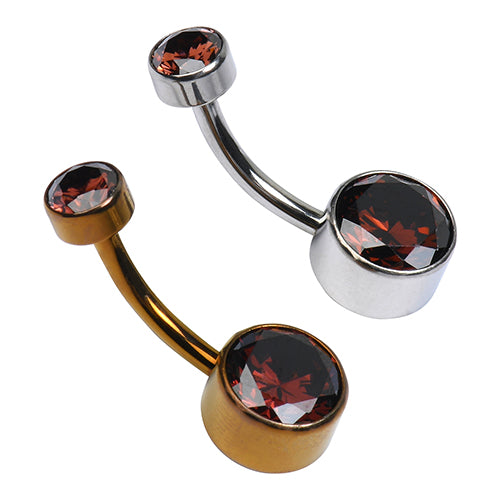 Bezel CZ Titanium Belly Barbell Belly No-Dangles 14g - 7/16" long (11mm) Chocolate CZ