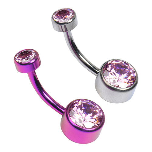 Bezel CZ Titanium Belly Barbell Belly No-Dangles 14g - 7/16" long (11mm) Light Pink CZ