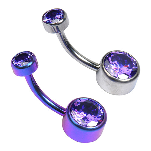 Bezel CZ Titanium Belly Barbell Belly No-Dangles 14g - 7/16" long (11mm) Tanzanite CZ
