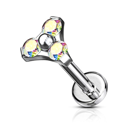 16g CZ Trinity Titanium Labret Labrets 16g - 5/16" long (8mm) Aurora Borealis CZ