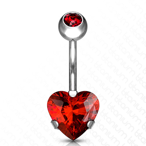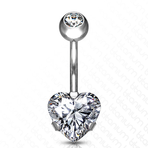 Heart CZ Titanium Belly Barbell Belly No-Dangles