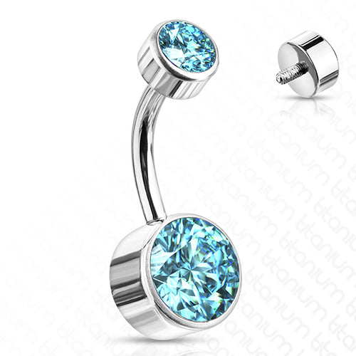 Bezel 4/6mm CZ Titanium Belly Barbell Belly No-Dangles 14g - 3/8" long (10mm) Aqua CZ