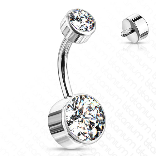 Bezel 4/6mm CZ Titanium Belly Barbell Belly No-Dangles 14g - 3/8" long (10mm) Clear CZ