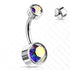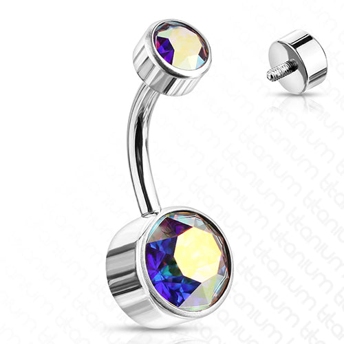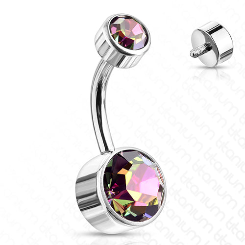 Bezel 4/6mm CZ Titanium Belly Barbell Belly No-Dangles 14g - 3/8" long (10mm) Aurora Borealis CZ