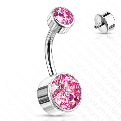 Bezel 4/6mm CZ Titanium Belly Barbell Belly No-Dangles 14g - 3/8" long (10mm) Pink CZ