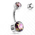 Bezel 4/6mm CZ Titanium Belly Barbell Belly No-Dangles 14g - 3/8" long (10mm) Vitrail Medium CZ