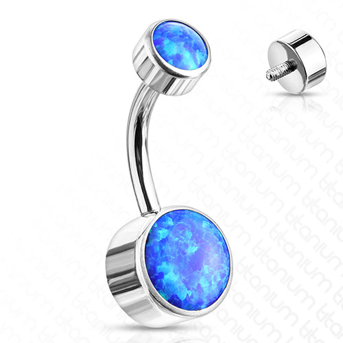 Bezel 4/6mm Opal Titanium Belly Barbell Belly No-Dangles 14g - 3/8" long (10mm) - 4&6mm Opals Capri Blue Opal