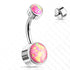 Bezel 4/6mm Opal Titanium Belly Barbell Belly No-Dangles 14g - 3/8" long (10mm) - 4&6mm Opals Hot Pink Opal