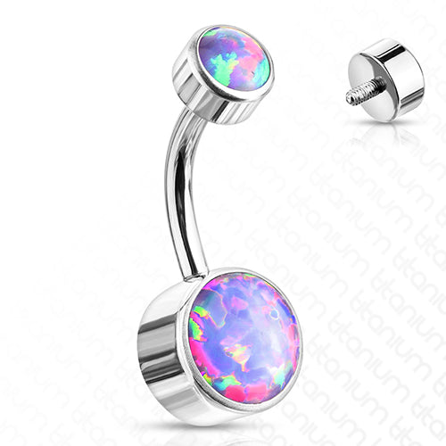 Bezel 4/6mm Opal Titanium Belly Barbell Belly No-Dangles 14g - 3/8" long (10mm) - 4&6mm Opals Purple Opal