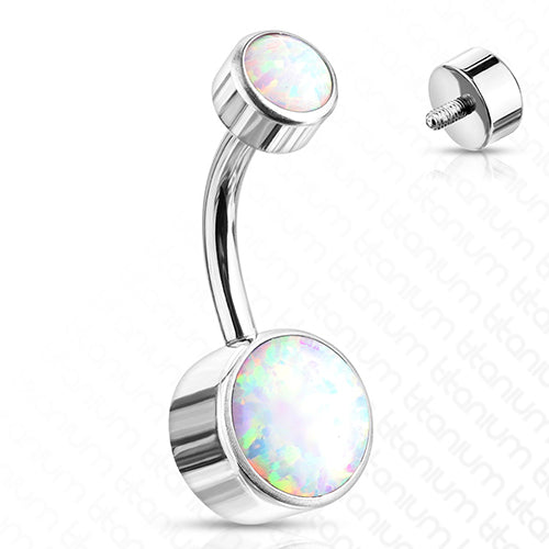 Bezel 4/6mm Opal Titanium Belly Barbell Belly No-Dangles 14g - 3/8" long (10mm) - 4&6mm Opals White Opal