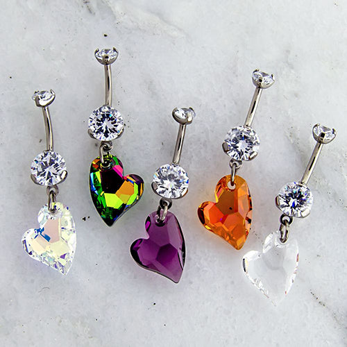 Swarovski Heart Titanium Belly Dangle Belly Dangles
