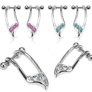 The 16 gauge straight barbells are made from externally threaded 316L stainless steel. The triple cz cartilage cuffs are made from alloy metal. You'll get a matched pair of the cuffs for both the left and right side. Choose your gem color below.