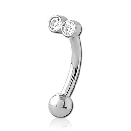 The 16 gauge twin cz eyebrow ring is made from 316L stainless steel with external threading. Only the 3mm ball end is removable.