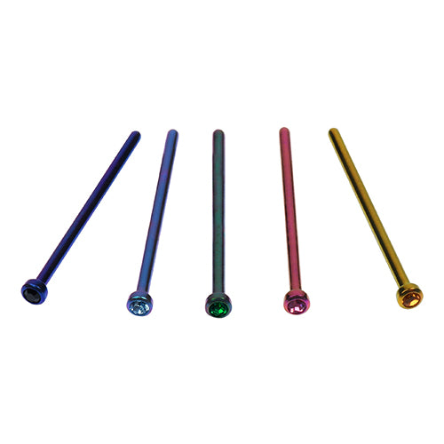 The unbent cz nose stud is made from high polish 6AL4V F-136 implant grade titanium with bezel-set 2mm faceted gem. These cannot be returned or exchanged if you select a custom anodized color. Only the high polish (plain silver) is eligible for our return policy. Choose your colors below.