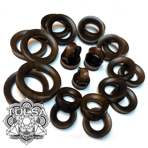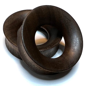 Walnut Wood Concave Tunnels Stretched Lobes 2 gauge (6mm) - 8mm wearable Walnut