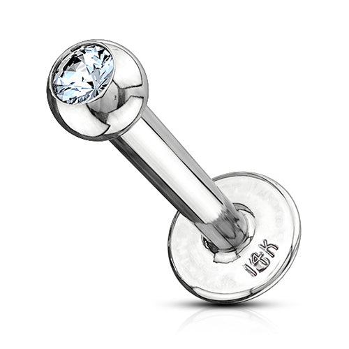 16g CZ White 14k Gold Labret Labrets 16g - 1/4" long (6mm) - 3mm ball Clear CZ