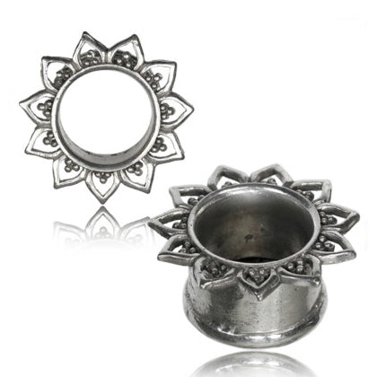 These double flare bali heart tunnels are made from white brass. They have a wearable area of 5/16" between flares. Choose your size below.