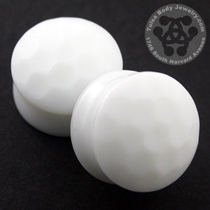 These double flare white martelle plugs are made from soda lime glass by gorilla glass. They have a wearable area of approximately 3/8" between flares. Available in 1" size only.