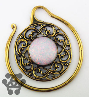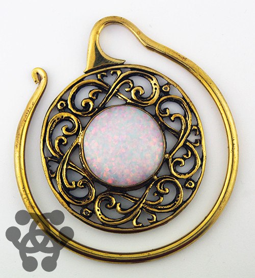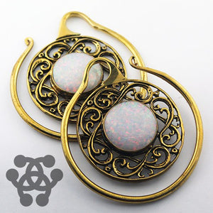 White Opal Celtic Hoops by Oracle Body Jewelry Ear Weights 8 gauge (3mm) Yellow Brass