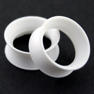 The white skin eyelets are made from implant grade silicone by Kaos Softwear. The ultra-thin wall eyelets are made from higher stiffness silicone with a less tacky surface. Just strong enough to hold a piercing open, almost like wearing nothing at all. These are sold as a pair. Choose your size below.
