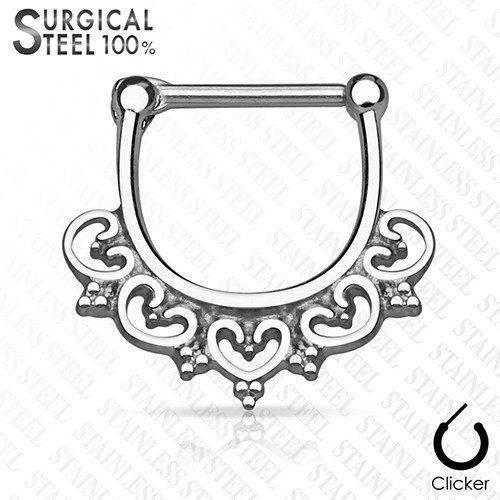 Wide Heart Filigree Septum Clicker Septum Clickers 16g - 5/16" diameter (8mm) Stainless Steel