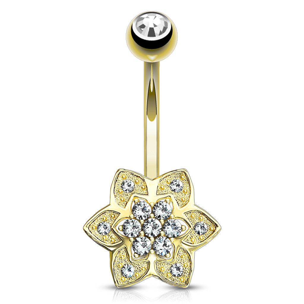 6-Petal CZ Yellow 14k Gold Belly Barbell Belly No-Dangles