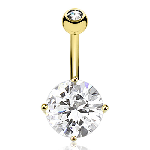 10mm Round CZ Yellow 14k Gold Belly Barbell Belly No-Dangles 14 gauge - 3/8" long (10mm) Clear CZ