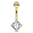 Square CZ Yellow 14k Gold Belly Barbell Belly No-Dangles