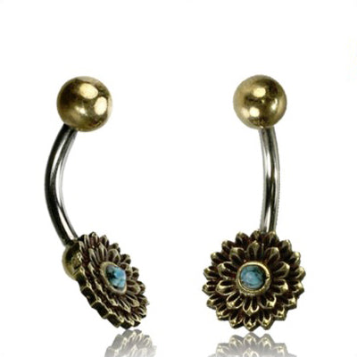 Yellow Brass Turquoise Belly Ring Belly No-Dangles